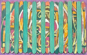 The lesson for January is Colorful Sticks. Happy New Year! We will start the new year playing with sticks…craft sticks that is. We will explore repetition, space and unity in this exciting and playful little textural design!