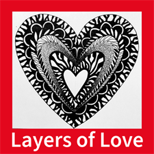 The lesson for October is Layers of Love. This month we will make heart shapes that increase in size and differ in pattern to make a layers of love drawing. Black markers were used in the example with no color added. You are welcome to add color if you prefer.