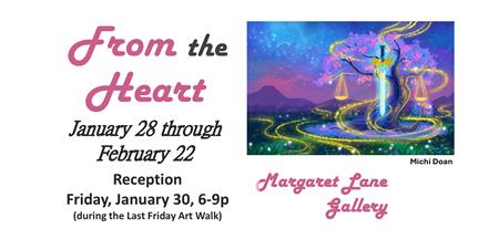 A not-quite-Valentine's-Day theme. Work from local artists embracing everything from romantic love, to love of others, nature, vocations, places, memories, colors, and justice.