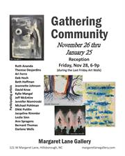 Celebrate community with work from 16 local artists depicting what draws us together and binds us, and the strength that community brings.